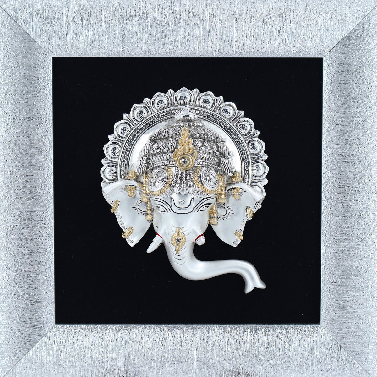 Bring home blessings, wisdom, and positive energy with this exquisitely designed Ganesha Wall Frame, crafted in a stunning silver-and-gold finish. The intricate detailing of Lord Ganesha’s face adds serenity and grace to any space, making it a powerful symbol of protection, success, and new beginnings.